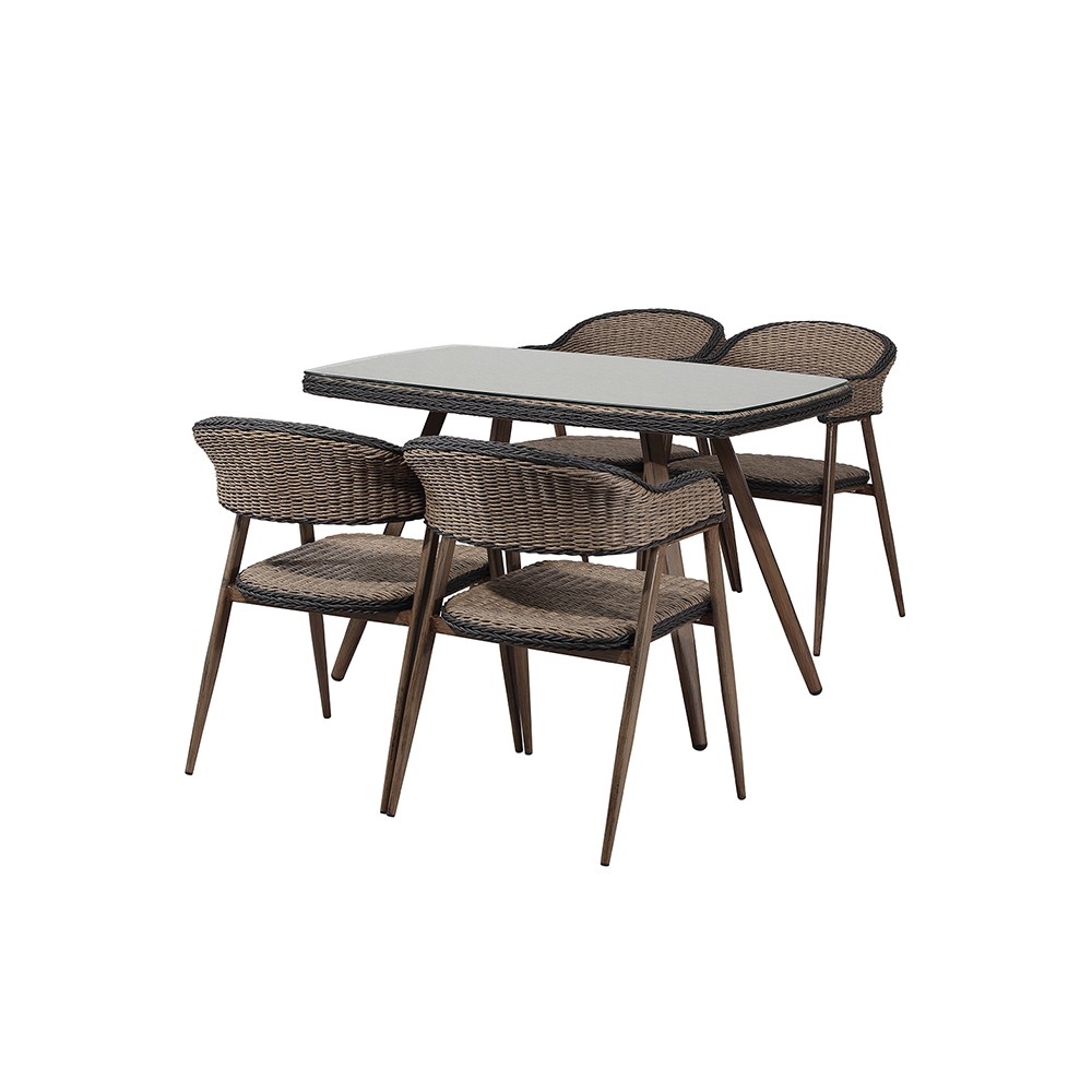 HFT-5811 이렌느 라탄 강화유리 사각테이블